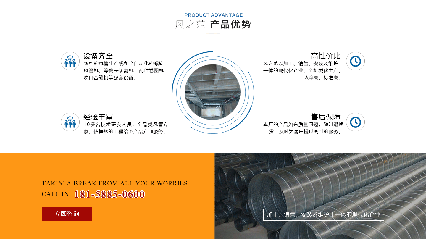 安徽風(fēng)之范通風(fēng)設(shè)備有限公司,是北京恒通偉業(yè)通風(fēng)設(shè)備有限公司再創(chuàng)的新臺階,多年來,公司員工憑著“誠信敬業(yè)、團結(jié)拼搏、勇于開拓、務(wù)實進取”的企業(yè)精神,先后承接了多項重點工程項目,使公司健康穩(wěn)步發(fā)展。現(xiàn)由于公司的壯大,業(yè)務(wù)的拓展,又于2016年底,成功坐落于安徽省合肥市包河區(qū)。本公司生產(chǎn)設(shè)備精良,技術(shù)力量雄厚,質(zhì)保體系完善!讓用戶體驗到,貼心的服務(wù),無憂的售后!風(fēng)之范是以加工、銷售、安裝及維護于一體的現(xiàn)代化企業(yè),同時以“創(chuàng)未來之風(fēng)、營誠信之范”為核心理念,面向全國各省市,大量生產(chǎn)鍍鋅板、不銹鋼、玻璃鋼、酚醛復(fù)合等通風(fēng)管道、螺旋風(fēng)管、廚房排煙罩、油煙凈化器、各種風(fēng)機風(fēng)柜、風(fēng)口風(fēng)閥、靜壓箱等配件設(shè)施。廣泛承接商場、工廠、酒店、寫字樓、地下室等,消防排煙工程、除塵凈化工程、室內(nèi)通風(fēng)工程、暖通空調(diào)工程、廚房排煙凈化工程。我們力求上進,追求,歡迎各界人士技術(shù)指導(dǎo),經(jīng)濟合作,共創(chuàng)美好明天!
